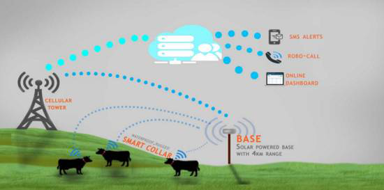 將智能穿戴設(shè)備放在牲畜的耳朵、脖子或者尾巴上。