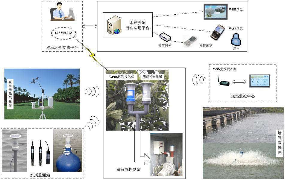 基于現(xiàn)代物聯(lián)網(wǎng)信息技術(shù)的水產(chǎn)養(yǎng)殖整體解決方案,主要包括三個部分:信息采集、自動控制和信息管理與視頻監(jiān)控系統(tǒng)等。